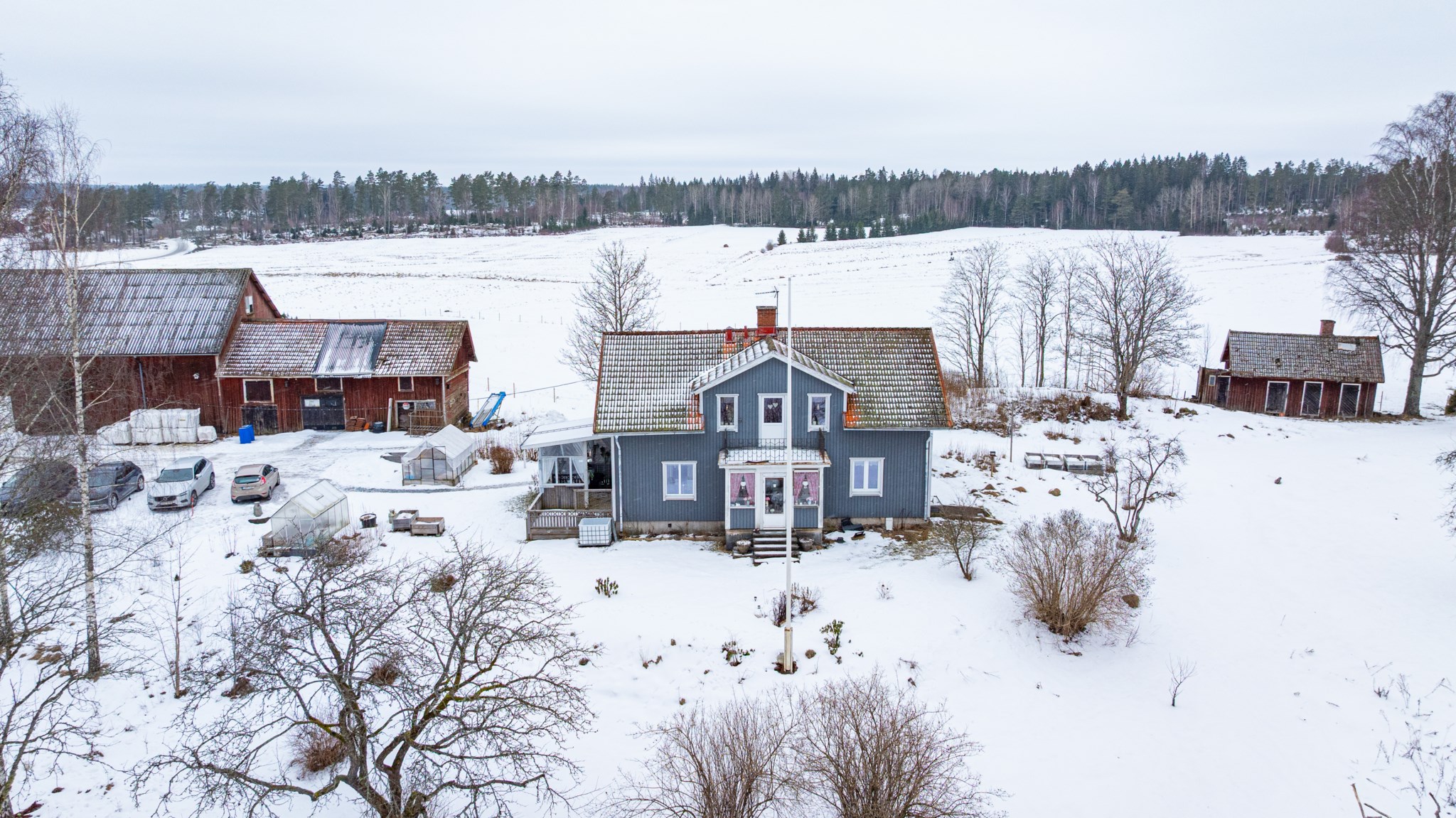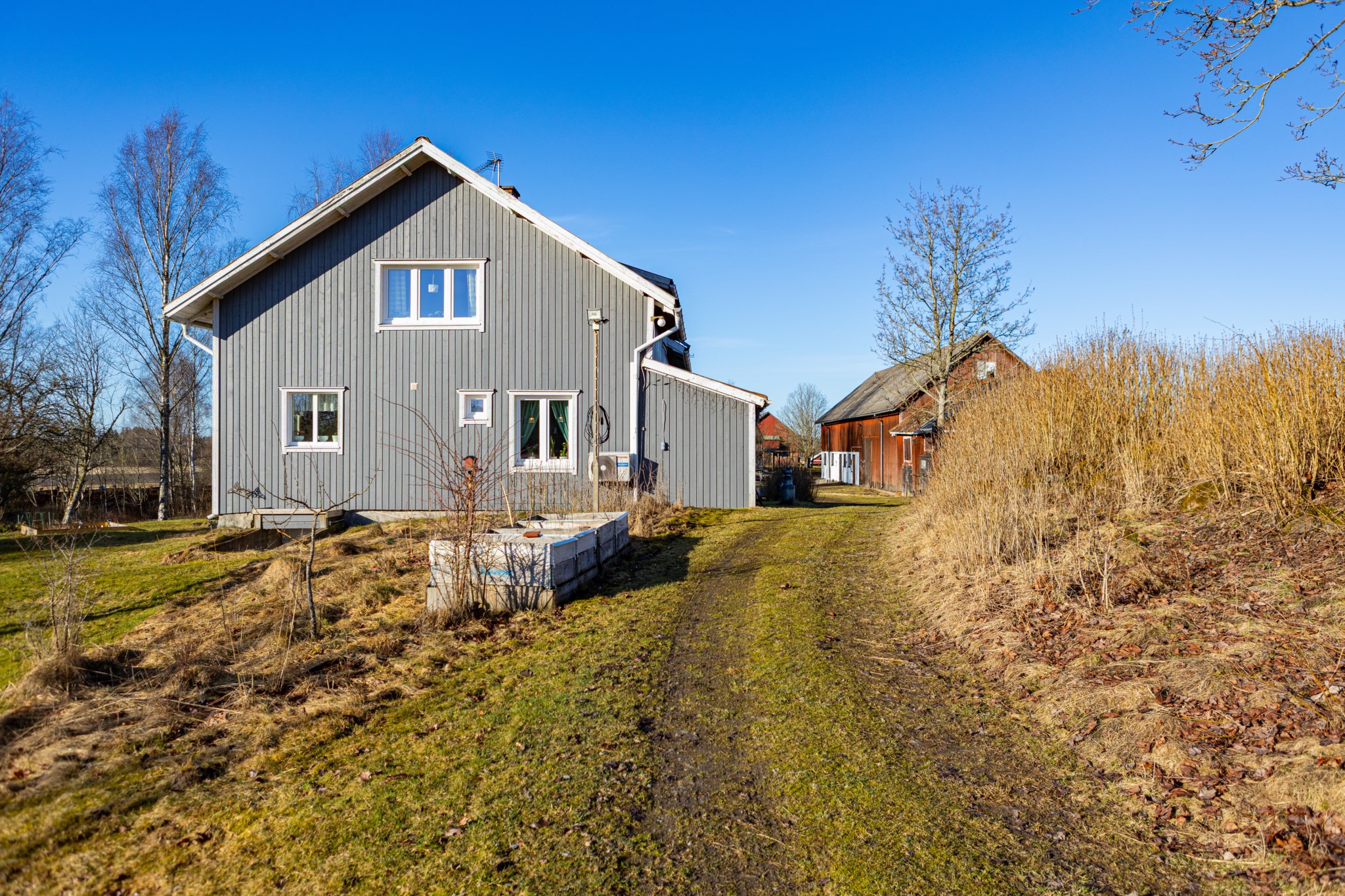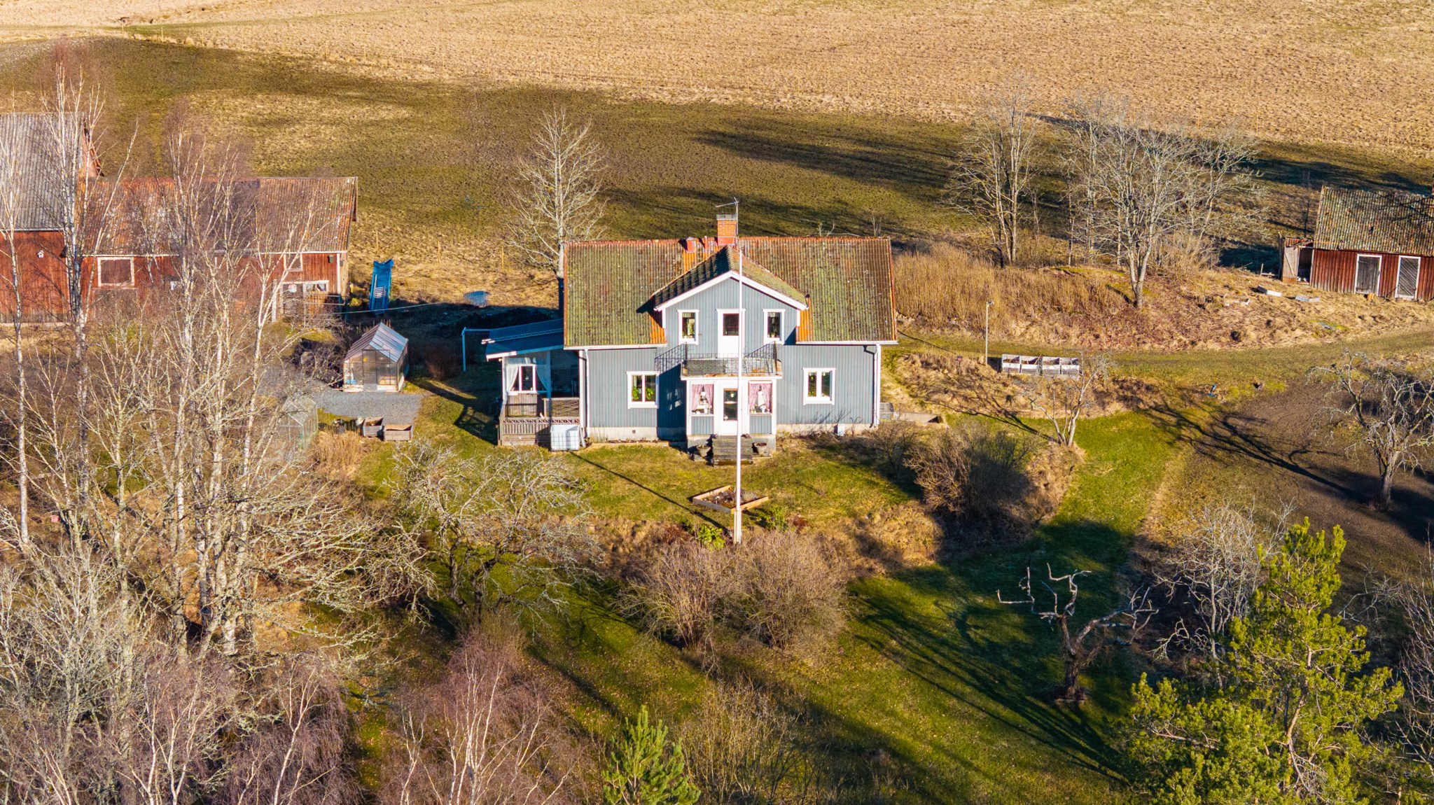 Till gården hör ca 2,5 hektar mark, lagom för bete, hagar och en lättskött gårdsmiljö.